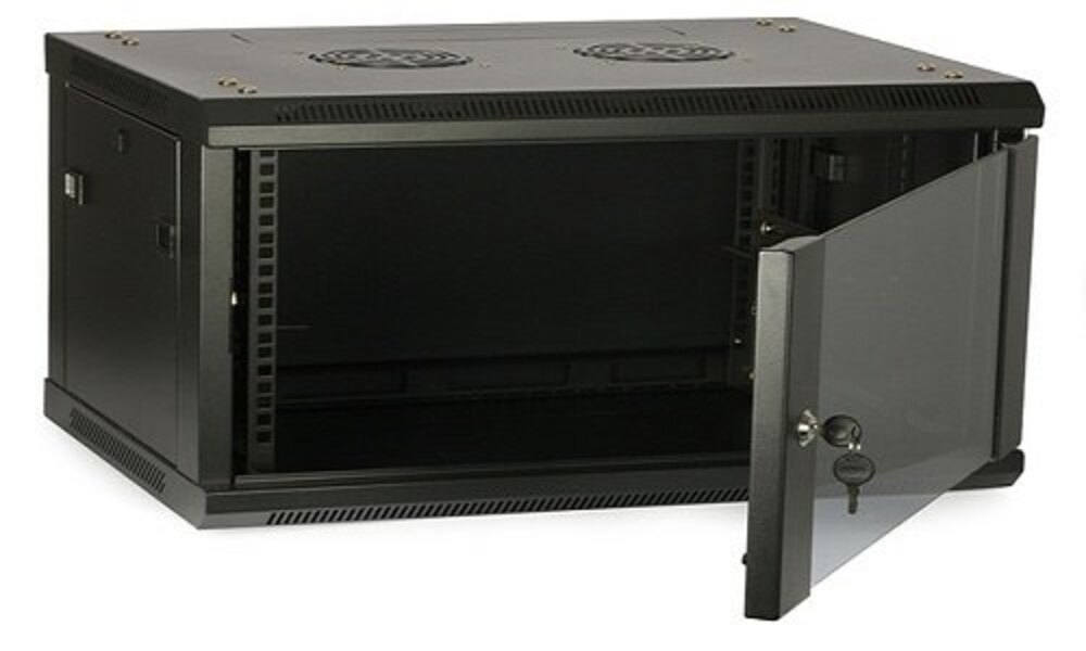 It is a compact wall -mounted or floor-standing cabinet designed for networking servers and electronic equipment. The dimensions indicate;
